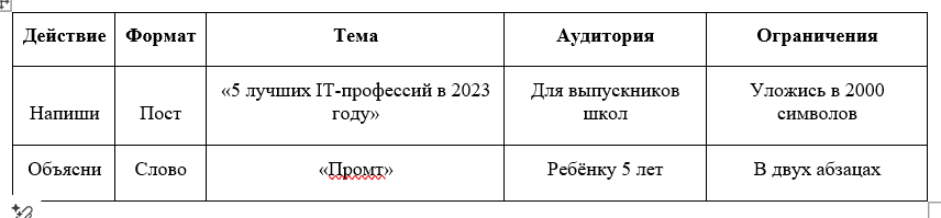 Практичная структура промпта может следовать простой формуле, представленной в исследованиях: